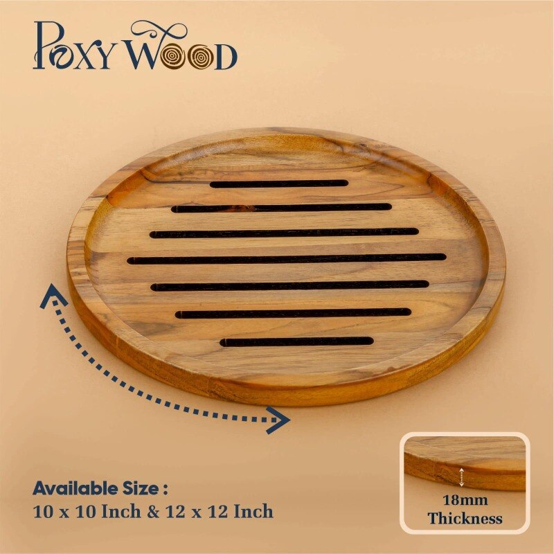 Serve fresh, warm rotis in style with the Poxywood Teak Wood Roti Cooling Dish & Serving Plate — a perfect blend of tradition, elegance, and functionality. Handcrafted from premium teak wood, this plate is designed to allow air circulation, keeping rotis soft and fresh for longer while adding a rustic charm to your dining table. The natural oil-rich teak wood resists moisture and bacterial buildup, making it a hygienic and long-lasting choice. Its smooth surface and subtle grain patterns make it ideal not only for cooling rotis but also for serving puris, parathas, snacks, or even dry fruits. Key Features: ⦿ Brand: Poxywood ⦿ Made from 100% premium-grade teak wood ⦿ Designed for cooling and serving rotis with natural ventilation ⦿ Naturally resistant to moisture, stains, and odors ⦿ Multi-purpose: use as a serving plate for snacks or flatbreads ⦿ Smooth finish with classic handcrafted look